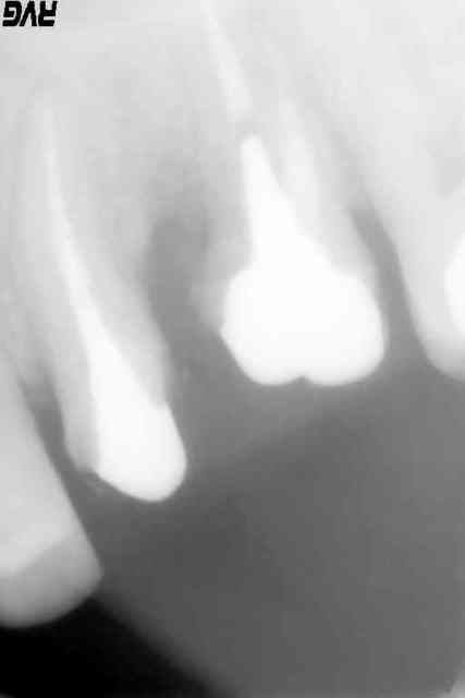 26 : rte faite, mais racines vestibulaires à extraire (multiples instruments cassés, et noyés dans une ancienne gutta)