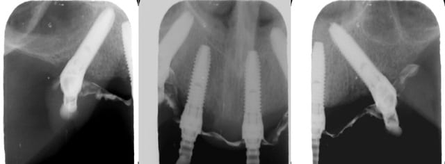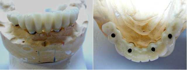 bref, au maxillaire, c' est la meme proth qui a été en premier une proth partielle immédiate, puis un bridge prov complet pour mise en charge imlmédiate...