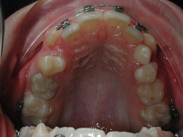 - Pourquoi de pas avoir immédiatement intégré les canines et la 24 (à moins que ce ne soit la 14, mais il semble que la photo occlusale soit à l'envers) ?