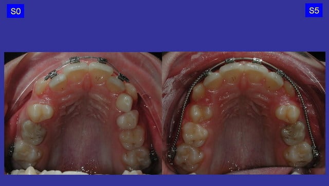 --> l'arc antèrieur est un CoNiTi .014 initiant l'alignement et le nivellement antèrieur d'un sectionnel 2x4.