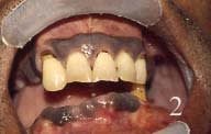 Lorsque j'ai présenté mon cas clinique à un conférencier (stomato), l'idée première retenue = risque cancer. Aucune explication concernant le tatouage proprement dit.Traitement proposé par le conférencier : desceller la couronne et refaire une céramo-métal. J'étais perplexe.