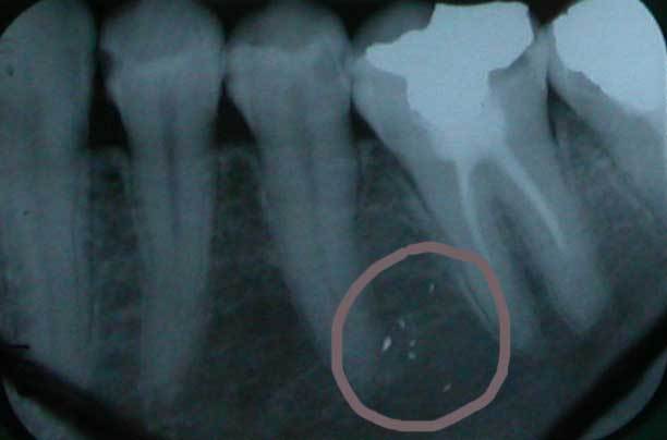 On observe parfois ce genre de tatouage au niveau d'amg sous-gingival ancien.