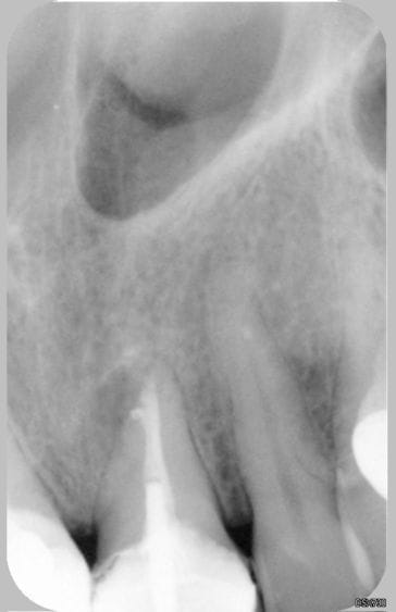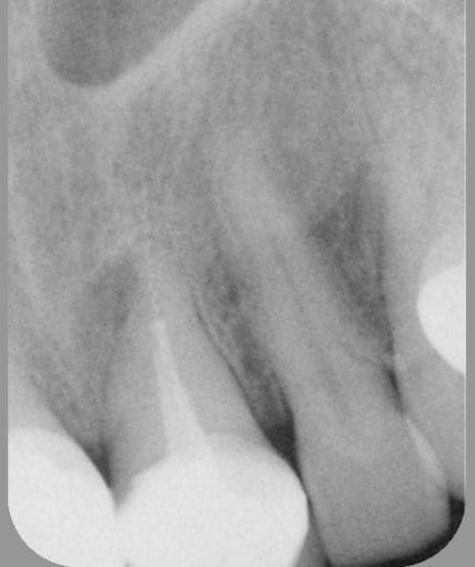 Bien sûr qu'il y a un peu de fierté, mais dans ce cas précis, je ne pense que cela était indispensable, car la lésion était plutôt latéroradiculaire et sans rapport avec l'instrument en question. Mais avant de se dire "je le laisse en place", il faut quand même essayer de le retirer (en tenant compte du rapport bénéfice/risque bien sûr). Et puis, c'est assez jouissif de retirer un fragment de 10 mm de long dépassant de 4 bons mm dans le périapex !