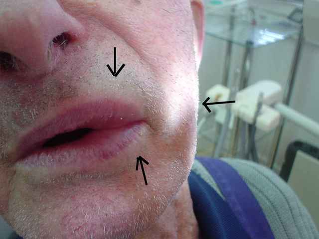 Cette fois ci un patient agé de 84 ans venant consulter ( envoyé par son generaliste) pour oedeme des levres sup et inf homolaterales. La face int de la joue presente elle aussi un oedeme.