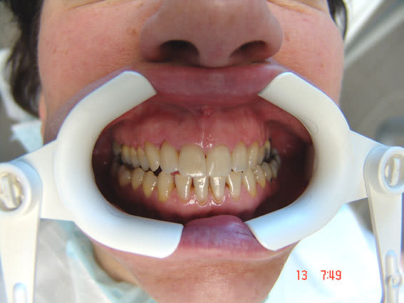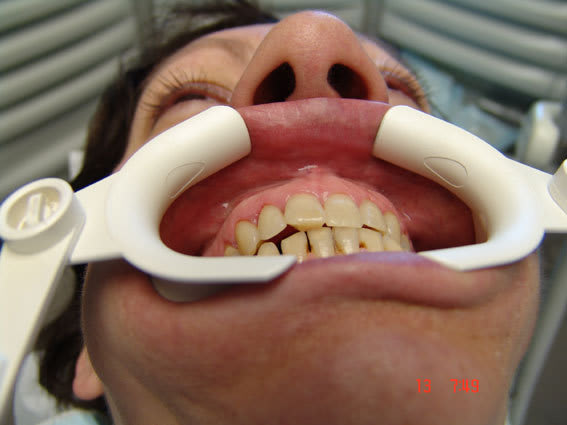 L'occlusion est devenue chaotique étant donné le problème hormonal. Le CMF et l'ortho veulent s'abstenir étant donné le caractère non-stabilisé de la maladie, évolution incontrôlable. Pourtant l'apparition de deux articulés croisés latéraux justifierait cette option.