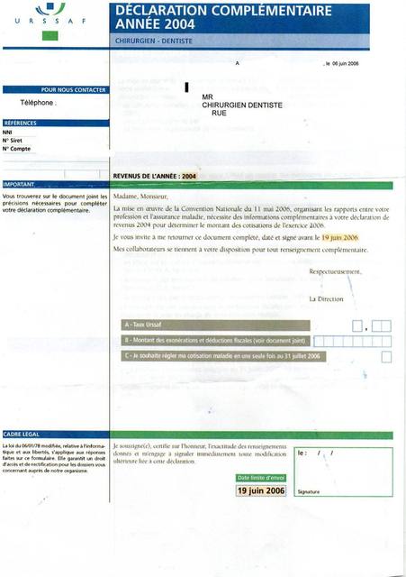 je viens de recevoir hier de l'URSSSAF unee déclaration complémentaire sur les revenus de 2004: taux urssaf=???; montant des déductions fiscales..