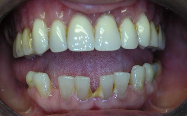 Elle a été édenté complétement au maxillaire et quelques dents à la mandibule à l'age de 13 ans par un dentiste aux usa.