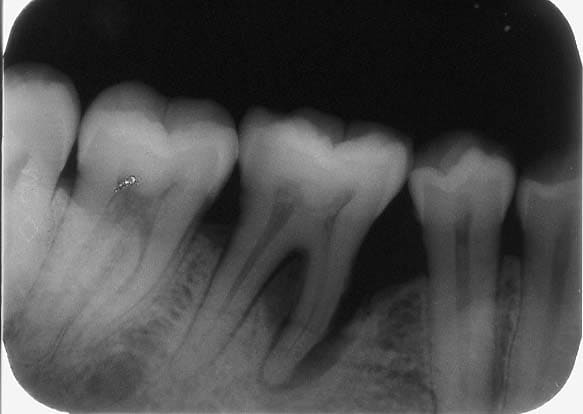 Comme le montre la radio, c est une dent saine sans aucune trace de carie. elle l est toujours d ailleurs.
