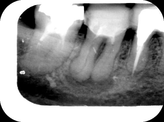 si pareille remontée de pâte cela signifie que au niveau osseux l'espace interadiculaire est lésé,non?
