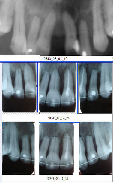 P.S. Ici, on voit bien qu'un traitement radiculaire protège des résorptions radiculaires (une partie du pool cellulaire responsable des rhizalyses provient de la pulpe). Je regrette de l'avoir oublié et de ne avoir demandé d'en faire en préventif sur toutes les incisives.