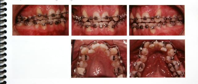 Ensuite y'a comme un truc collé aux dents du patient "fini".... ts ts ts c'est pas joli de tricher, si un cas est stable fonctionnellement y'a pas besoin de contention, langue, lévres, joues et occlusion devraient assurer l'equilibre de tout ça....