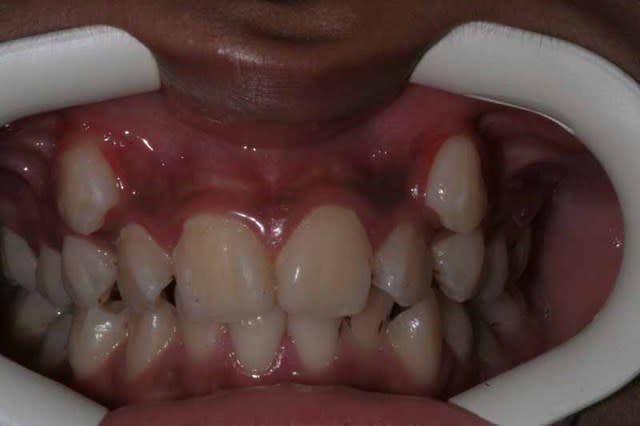 J’ai resserré les couronnes dans un premier temps avant d’appliquer une force d’ingression. Tout cela avec des forces ultralégères et en laissant au maximum les dents se déplacer librement.