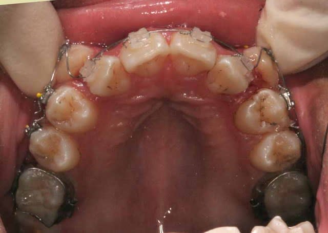 A ta question sur les braquets, c’est volontairement que j’ai mis ces systèmes, pour justement ne pas contrôler le mouvement latéral et risquer d’infliger aux dents des forces parasites incontrôlées. Si tu regardes la situation initiale, il est difficile de bien viser en remontant les apex au niveau de l’os. Je voulais que ceux-ci « tombent » naturellement dans leur « logement ».