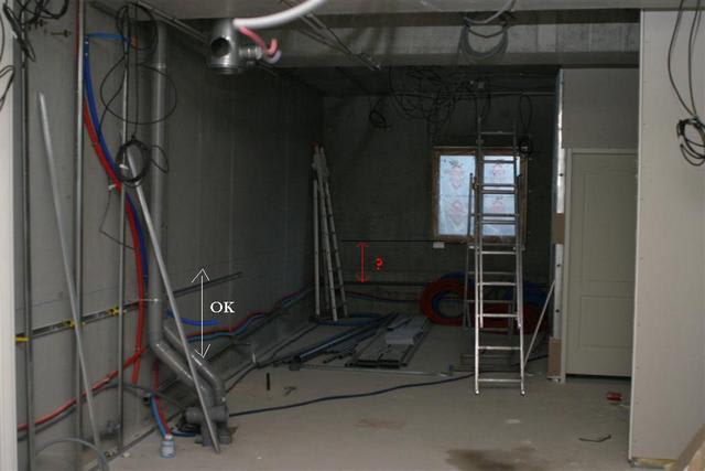 Au fond côté fenêtre, si c'est bien le retour du même tuyau la pente me paraît trop juste.