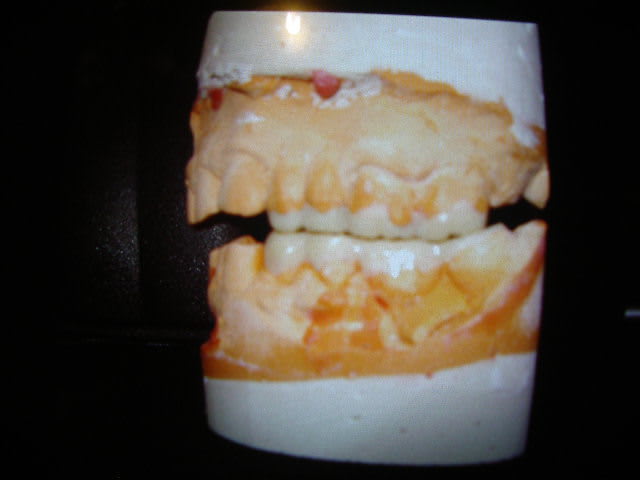 Ceci dit il est clair que beaucoup de patients se "débrouillent" pour avoir cette désocclusion, souvent en classe II avec ces canines en avant et une forte tendance à avoir cette forme trapézoïdale, surtout à la mandibule... as-tu remarqué que ces gens sont en général trés volontaires, dynamiques.... cette "mise en avant", en "évidence" des canines est une démonstration de force et de caractére et ces gens là sont du pain béni pour nous dentistes si ils veulent bien nous suivre même sil ils sont le plus souvent des boules de nerf à vif, contrairement au gar en béance avec les "dents du bonheur" qui, même s'il est éminemment sympathique, est en général quelqu'un qui plane 10 km au dessus de la terre ferme et qui se fout royalement de tout, y compris de son traitement.. le genre "panipoblem" si tu vois ce que je veux dire....