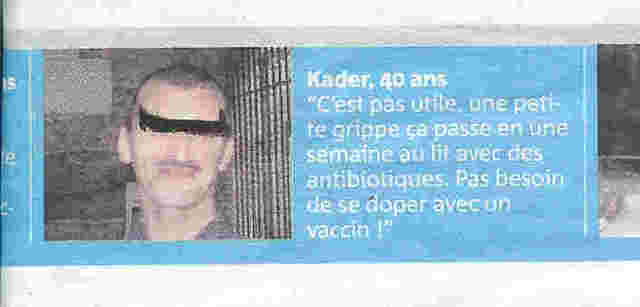 Me suis vacciné l'an dernier pour ecouler les stocks de ma medecin du travail d'épouse..... 1 jour et demi au lit 24h plus tard avec TOUS les signes de la grippe suivis de 2 mois de fatigue intense pour finir avec une pneumopathie en janvier et 3 semaines d'antibio.... donc cette année je préfére risquer de n'attrapper QUE la vraie grippe et donc plutot crever que me vacciner.
