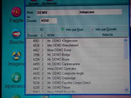 j'ai crée des fiches Nom: DEMO prénom:le type d'acte que je peux montrer en explication au patient: inlay core ,implant ,compo etc