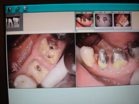 Photo du NB avant et après, le patient comprend l'importance du détartrage. Et que dire de la dent cassée ou vous demandez au patient ce qu'il pense du traitement réalisable...il répond une COURONNE :) :) Le tour est joué! meme pas besoin d'expliquer, le plan de traitement est fait.