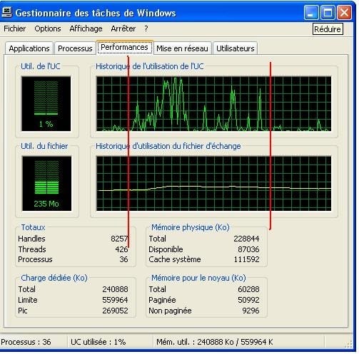 Photo 3 activité avec l'utilisation d'une l'imprimante gourmande en ressources, t'indique ici des pics de travail parfois à la limite de la saturation.