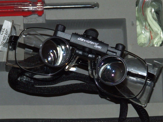 bon les gars, quand vous saurez qui pisse le + loin, vous pourriez répondre à mézigue, je viens de recevoir mes orascoptic 2.8 avec illuminator (ça fait froid dans le dos, un superhéros entre gladiator et terminator) et j'ai comme qui dirait l'impression qui faut que je me penche comme une vieille (du genre alain) pour mater les fonds de sauce dentaire.