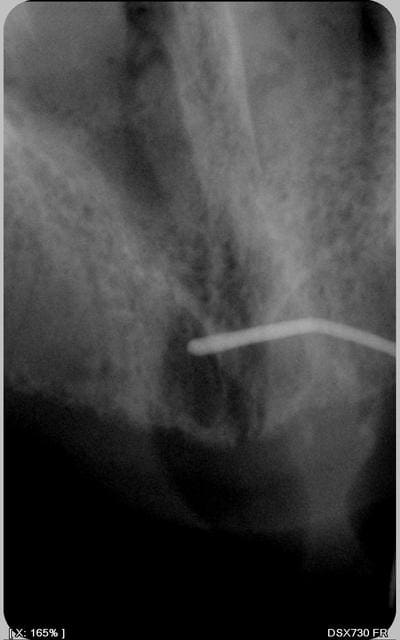 j'ai l'impression d'y voir une lésion (granulome,kyste résiduel ou kyste naso-palatin)