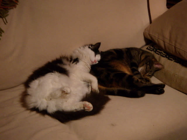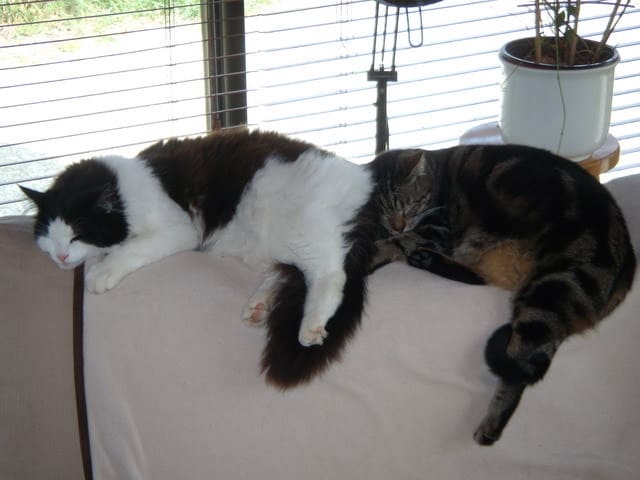 et une devinette : ou sont mes pieds ? ( on y voit aussi les pieds du proprio des chats