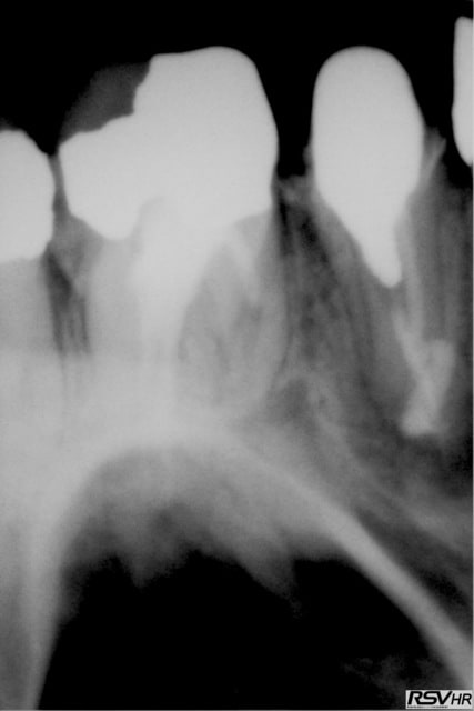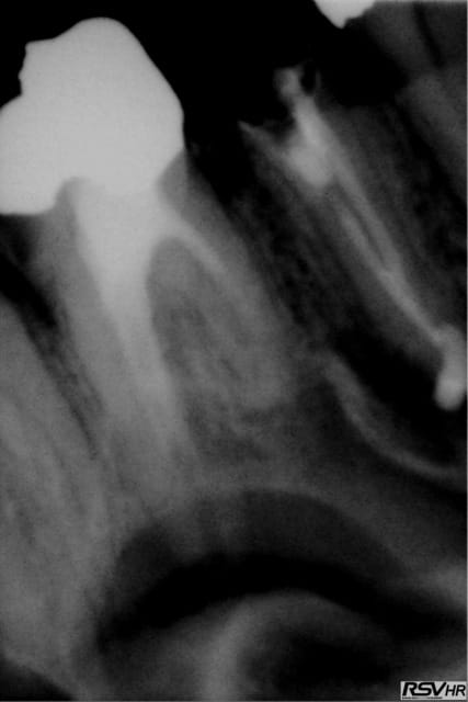 Que pensz vous de la racine mésiale de la 26, le praticien precedent s'est arreté a la moitié et le canal s'elargit cela ressemble t il pour vous à une résorption interne?