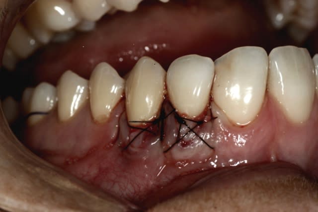 J'avais essayé sur une incisive maxillaire, un petit lambeau déplacé coronairement avec une incision semi-lunaire.