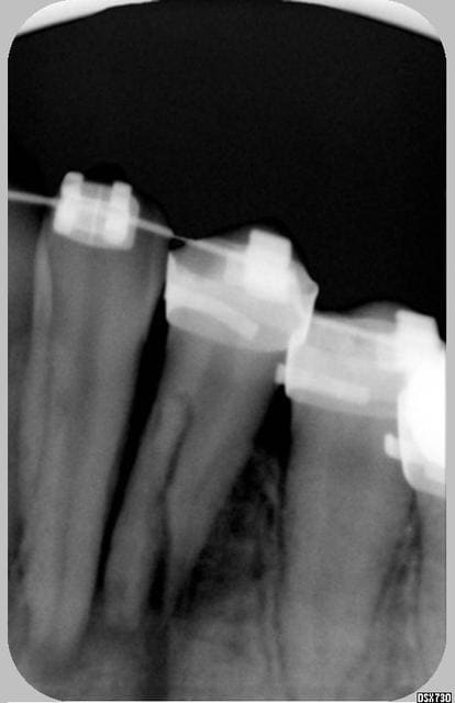 Il y a actuellement lyse radiculaire de bloc incisivo-canin et aucune sensibilité de ce groupe.