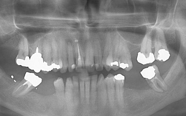 les reprises de traitements endodontiques, celui de la 12 nécrosée, et la reprise des amalgames débordants ou infiltrés étant bien sûr sous-entendus.