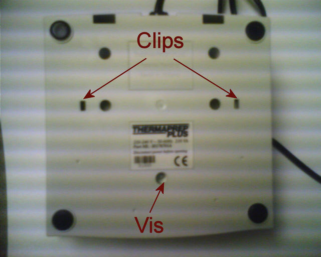 Il y avait une seule vis au centre (sous une étiquette marquée : tested) et deux clips à atteindre avec un tournevis fin (j'en ai cassé un mais c'est pas grave).