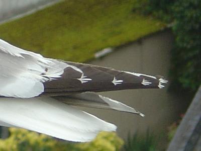 en fait, chaque rémige se fini par un pinceau blanc quand ils sont assez âgés, on a l'impression que ces pinceaux sont alignés en étoiles d'amiral.
