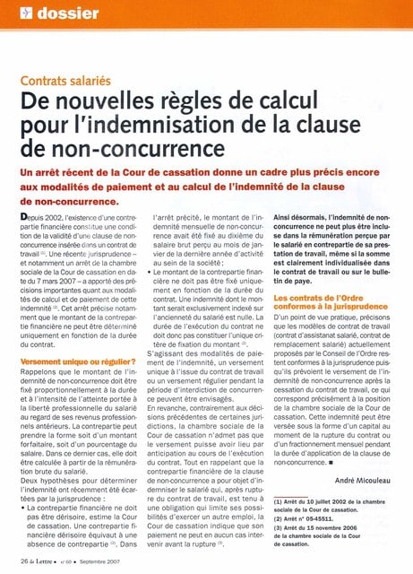 Dis moi, ou as tu trouvé le jurisprudence dans le domaine de la clausede non-concurrence? Je suis dans le même cas en ce moment.