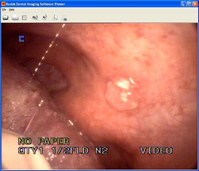 c'est pas très net, mais je mets 2,50 dollars sur un papillome : exerèse et analyse chez chir ou orl.
