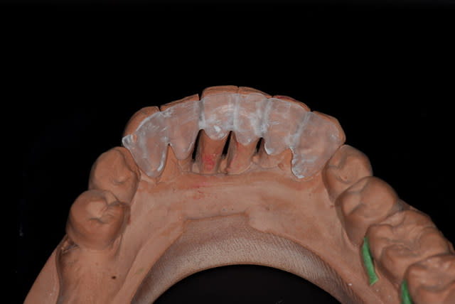 le bloc zircone vaut dans les 150(surdimensionné de 30%), donc on usine d'abord un bloc en plastique pour voir si le fraisage et l'adaptation au modèle sont corrects.