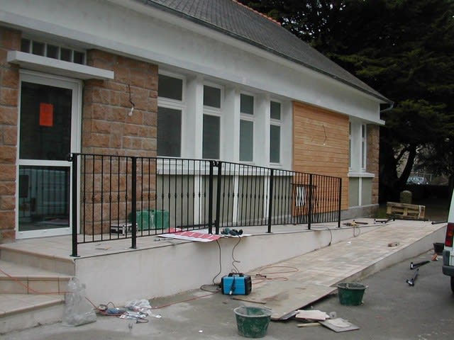 on a posé la rambarde d'accès aujourd'hui, et voici mes poubelles dont je suis très fier.