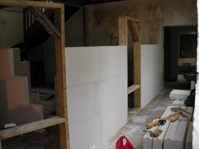 pour les murs ext, on ne rajoute rien non plus, l'isolation existante étant déjà satisfaisante et notre région pas trop froide.