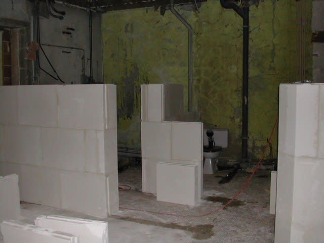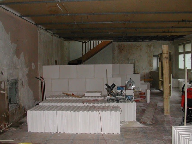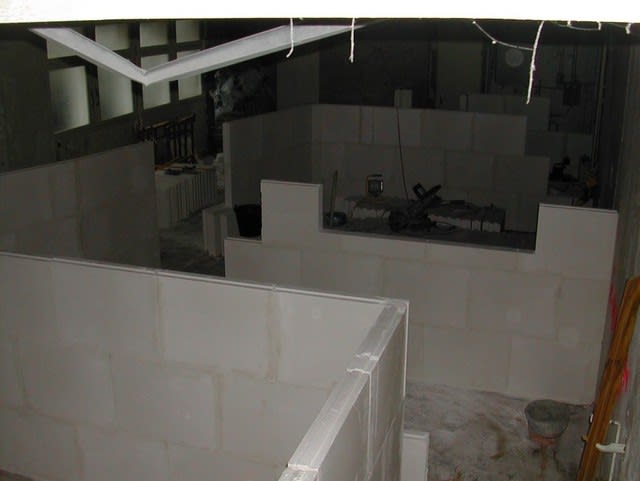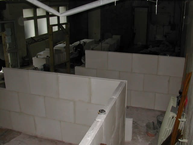 pour les cloisons, fin programmée la semaine prochaine, puis intervention de l'electricien /plombier, pendant ce temps là, les gars s'occupent de la rampe d'accés si il fait beau.