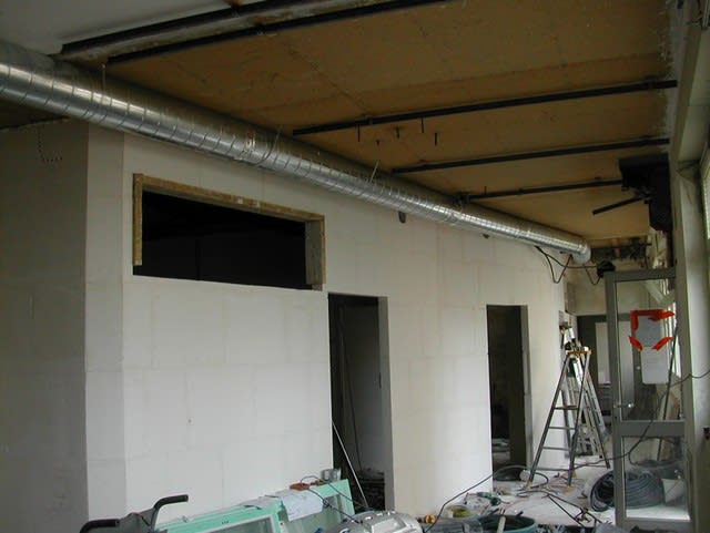 pour les palquistes, il n'y a pas grand chose, un mur à doubler, et la cloison de séparation acceuil/attente, qui est en arc de cercle.