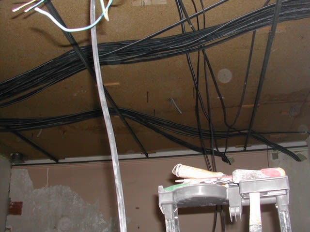en cours: pose des rails pour le faux plafond.