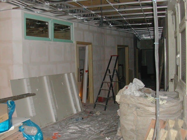 rdv lundi avec un entrepreneur pour programmer la suite des travaux (un peu de menuiserie interieure, la cloison de la salle d'attente, + rampe d'accès exterieure, pose des dalles du faux plafond)