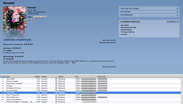 parmi ceux qui vivent près d'une fnac ou consor, certains ont-ils le dernier album de siouxsie sioux : mantaray ? est ce vrai qu'il est déjà dans les bacs? est-il bien?