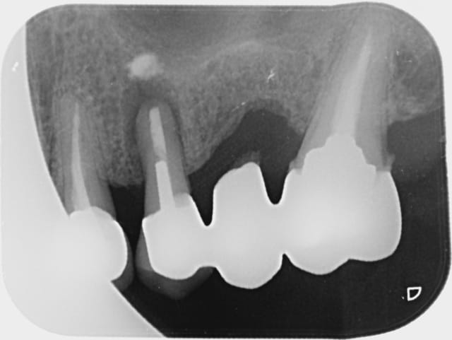 Mai 2010 , pb paro léger en mésial de la 27 . Surprise : Oh , un bridge ?