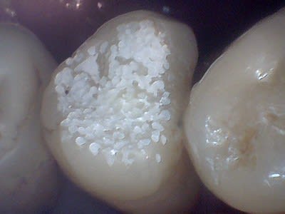 la vitrification dentinaire, des grosses boules de cristaux fondus qui ferment les tubuli, voilà de quoi augmenter l'adhésion, il ne faut pas en douter !
