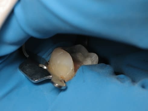 C'est n'importe quoi, il faut placer ta digue une dent de plus de part et d'autre de la dent traitée, et compléter au besoin avec une digue liquide photopolymérisable...