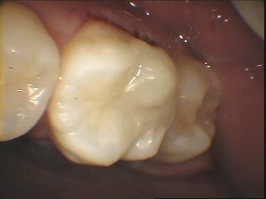De plus, l’état de surface ainsi obtenu offre un meilleur ancrage tout en assurant une bonne herméticité et génère une biostimulation. Voici pour exemple un cas, sans carbonisation, réalisé ce matin pour rééquilibration occlusale par ajout de composite sur composite préexistant (patient ayant subi une ostéotomie sagittale maxillaire Lefort 1).