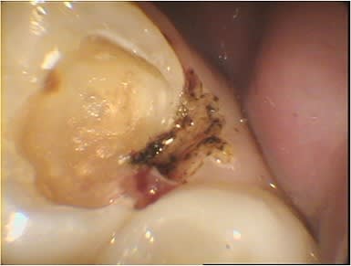 Après hémostase, stérilisation et vitrification, la carbonisation est facilement éliminée aux US et si besoin avec du Negatol (un antiseptique). Cette carbonisation peut être évitée et son importance dépend du matériau ou du tissu traité, elle peut aussi servir à la détection de dentine infiltrée. Les protéines sont déstructurées à 60°, l’effet thermique en mode superpulse ou chopérisé est bactéricide et la puissance crête peut atteindre 200W mais son absorption reste très limitée (0.1mm) donc sans danger pour la pulpe.