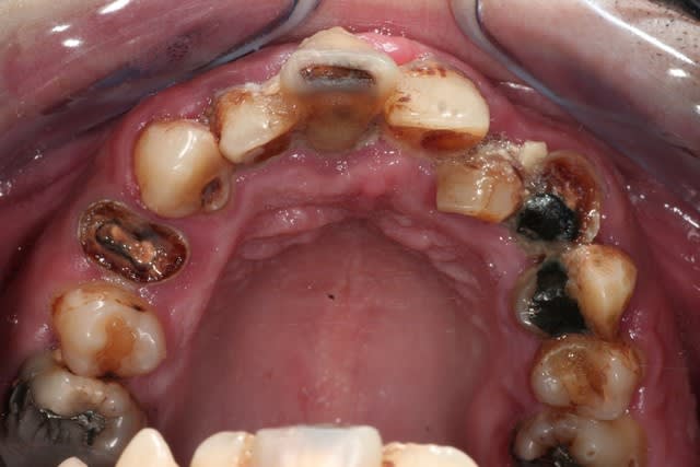 4 implants ( ? ) et hausse de la DVO. mais avant decouverte du brossage.