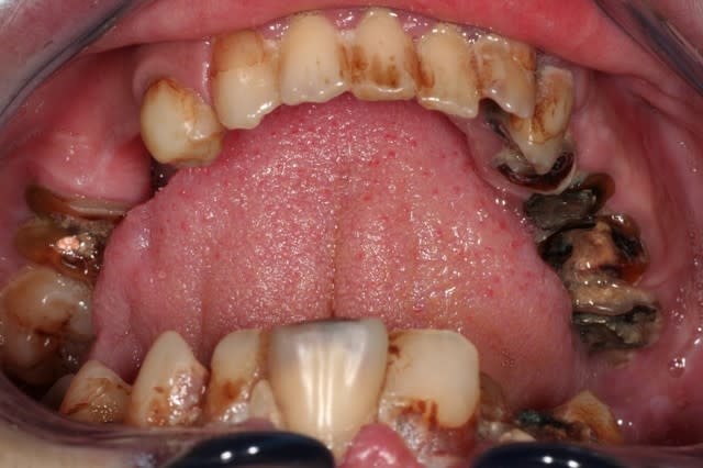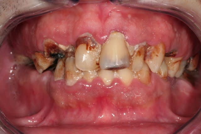 4 implants ( ? ) et hausse de la DVO. mais avant decouverte du brossage.