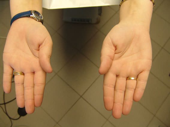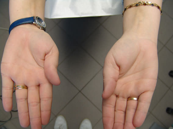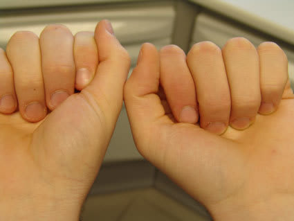 L'examen des bras montre une rétraction sur le bras gauche et l'interposition d'un papier d'occlusion en palatin de la cuspide vestibulaire de 24 reproduit la contraction (ceci étant commun à quasiment tous les patients qui ont des problèmes d'estomac.) L'interposition entre les autres points de contact ne modifie pas la posture.